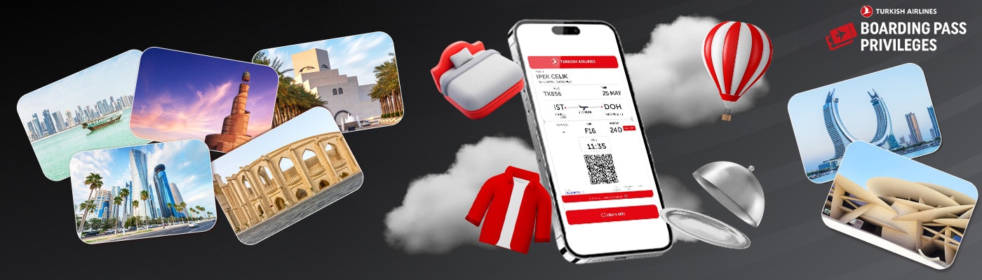Where the desert meets the ocean and modern architecture meets ancient culture, Turkish Airlines boarding pass privileges await you in Qatar. Add value to your trip to Qatar with the many benefits offered to our passengers at luxury shopping malls, gourmet restaurants, art galleries, and comfortable hotels.