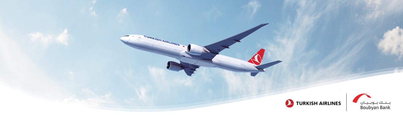We are very glad to be in the collaboration with Boubyan Bank. Book your flights now via Turkish Airlines website or mobile application using your 15% discount code BBYN15 and enjoy with the privileges of Turkish Airlines.
