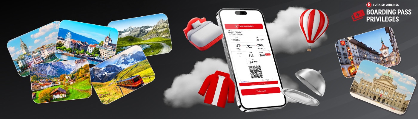 Don't forget to take advantage of Turkish Airlines boarding pass privileges while exploring Switzerland's breathtaking landscapes. Get ready for a privileged trip to the foothills of the Alps with special offers at partner hotels, restaurants, and entertainment venues in Swiss cities renowned for their natural beauty and aesthetic architecture.