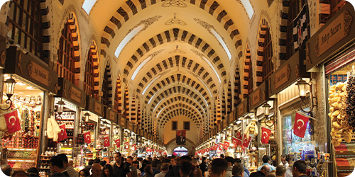Spanning 30,000 square meters and housing thousands of shops, the Grand Bazaar is Istanbul’s most famous tourist shopping destination. Built after the conquest, this 600-year-old bazaar sells many traditional products, from Turkish delight to carpets and from jewelry to spices.