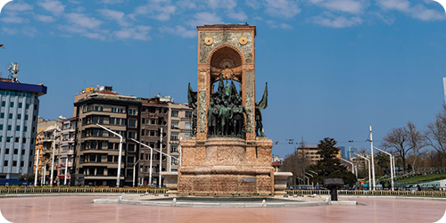 Inaugurated in Taksim Square in 1928, the Republic Monument was built in Rome and brought to Istanbul by ship. Located at the north end of Istiklal Street, the bronze monument represents the War of Independence on one side and the Republic of Türkiye on the other.