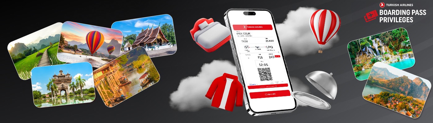With its mysterious temples, lush tropical forests, and unique culture, Laos invites you on a unique journey of discovery. Enjoy many benefits, from traditional Laotian cuisine to a variety of accommodation options, shopping centers, and entertainment venues, with special privileges offered with your Turkish Airlines boarding pass.