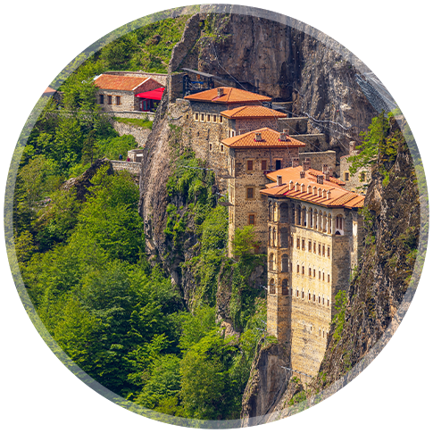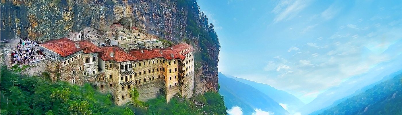 In Trabzon's Maçka district, the Sümela Monastery is set on a steep cliff at the foot of Karadağ in the Altındere Valley. Appearing to be attached to the side of the mountain, the monastery is a unique union of nature and architecture. Known as the “Virgin Mary” monastery for an extended period, one of the structure’s most historically significant features is that it once served as a school for training monks.