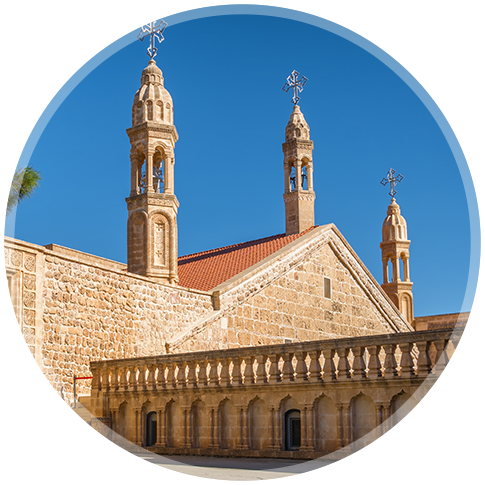 Mor Gabriel Monastery is one of the Syriac Ancient Community's most important monuments. Erected in 397, the monastery stands on a high hill covered with oak trees. Serving as a metropolitan center between the seventh and eleventh centuries, the monastery is divided into several sections, including the Great Church, the Mor Gabriel Retreat Room, Thedora Dome, Retreat Tower, House of Saints, Forty Martyrs Shrine, Mor Gabriel Tomb, House of Apostles, and the Monastery Courtyard, among others.