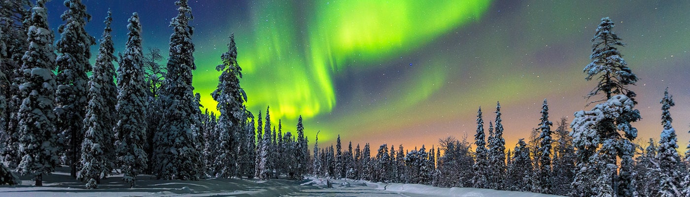 Rovaniemi, the capital of Finnish Lapland, is considered one of the best places to see the northern lights. Less than 10 kilometers south of the Arctic Circle, the city was designed in the shape of a reindeer’s head; reindeer safaris through pristine snow-covered landscapes are a popular tourist activity, as are visits to the Santa Claus Village. Encircled by lakes and forests, Rovaniemi is also a destination for winter activities like dog sledding, skiing and snowshoeing.