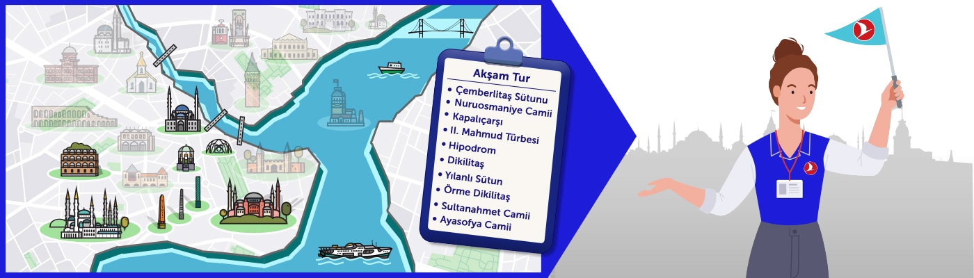Tarihi ve kültürel bir İstanbul keşfi için akşam turu tam size göre. Bu keyifli gezide tarihi yarımada üzerindeki önemli noktaları ziyaret edecek, geleneksel lezzetlerin tadını çıkaracak, kadim şehri özel kılan mimari eserleri ve günlük yaşamını yakından tanıyacaksınız.
