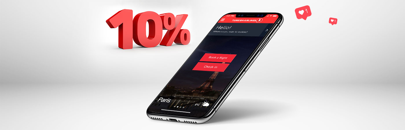 Mobil uygulamamıza şimdi Almanca seçeneği de eklendi. Ülke ve dil ayarınızı Almanca yapın, Almanya çıkışlı gidiş-dönüş uçuşlarımızda TKDEUTSCH promosyon koduyla %10 indirim kazanın.