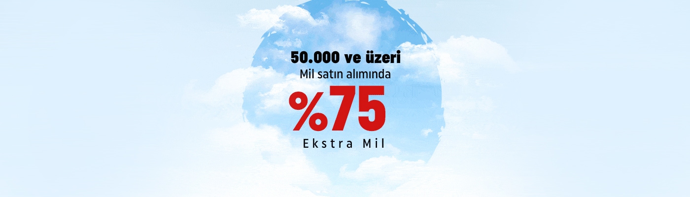 - 20.000 – 49.999 Mil satın alımında %50 ekstra Mil, 50.000 – 99.999 Mil satın alımında %75 ekstra Mil kazanımı olacaktır.
