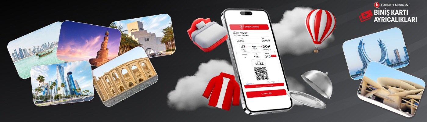 Çölün okyanusla buluştuğu, modern mimariyle kadim kültürün bir araya geldiği Katar’da Türk Hava Yolları biniş kartı ayrıcalıkları sizi bekliyor. Lüks alışveriş merkezlerinden gurme restoranlara, sanat galerilerinden konforlu otellere pek çok noktada yolcularımıza sunulan avantajlarla Katar seyahatinize değer katın.