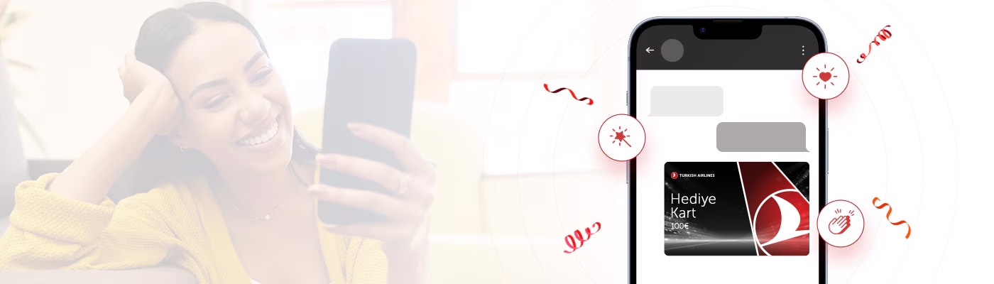 Turkish Airlines Hediye Kart ile, hayatınıza değer katan insanlara özel bir seyahat deneyimi ve keşfetme heyecanı armağan edin. Alternatif tema seçenekleri sunan uçak bileti hediye kartı, sevdiklerinizi önemli günlerinde hediye uçak bileti ile mutlu etmenize yardımcı olur.
